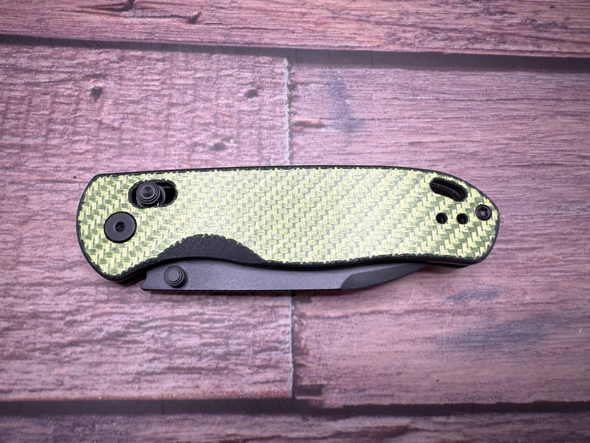 - Magic green carbon fiber and G10 handle for standout style and a confident grip